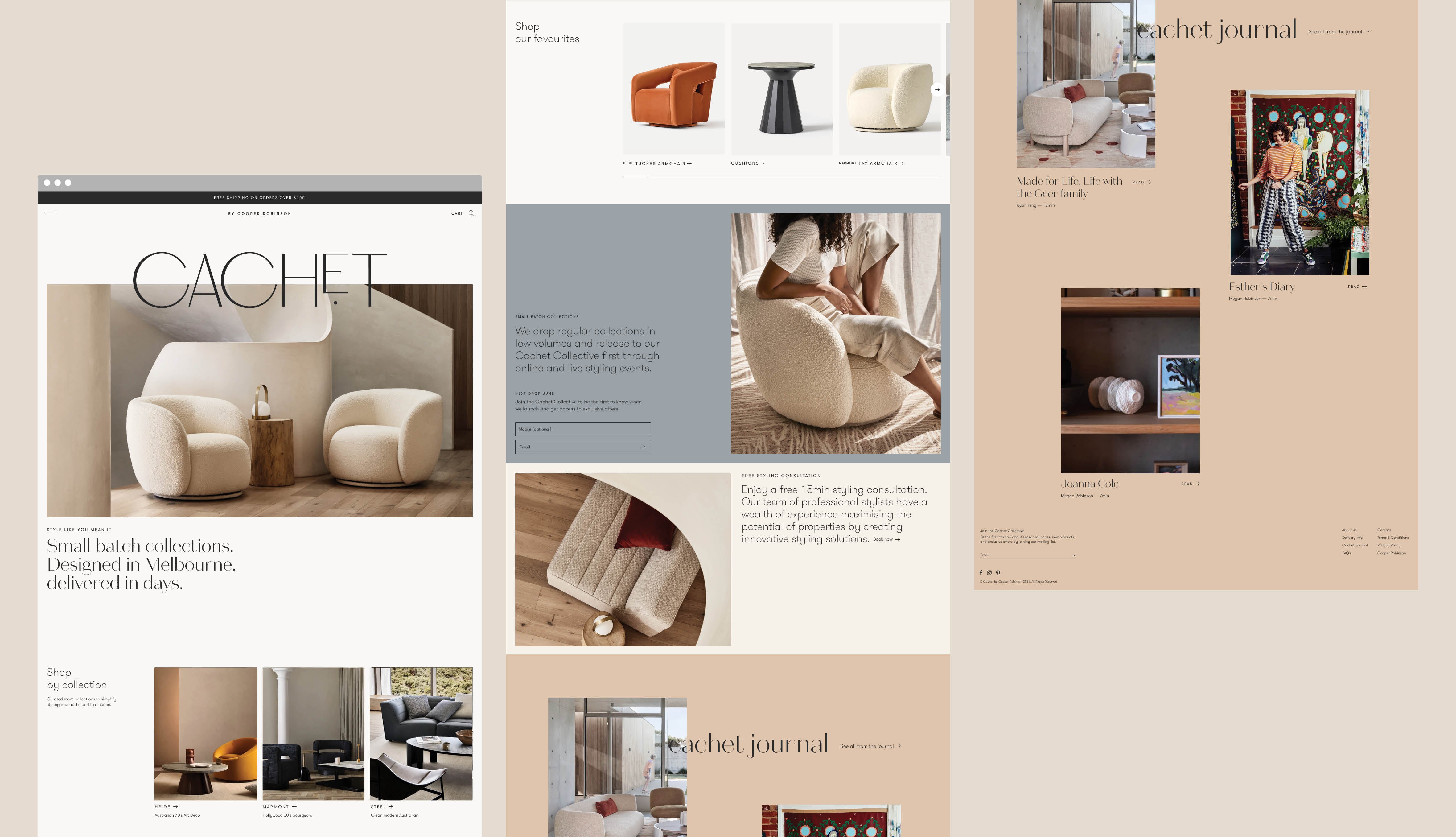 Cachet approached us for our best-in-class UX/UI expertise and development. We re-designed and re-engineered their Shopify Plus store, optimising the brand experience by emphasising the story behind their unique pieces and sustainable production.